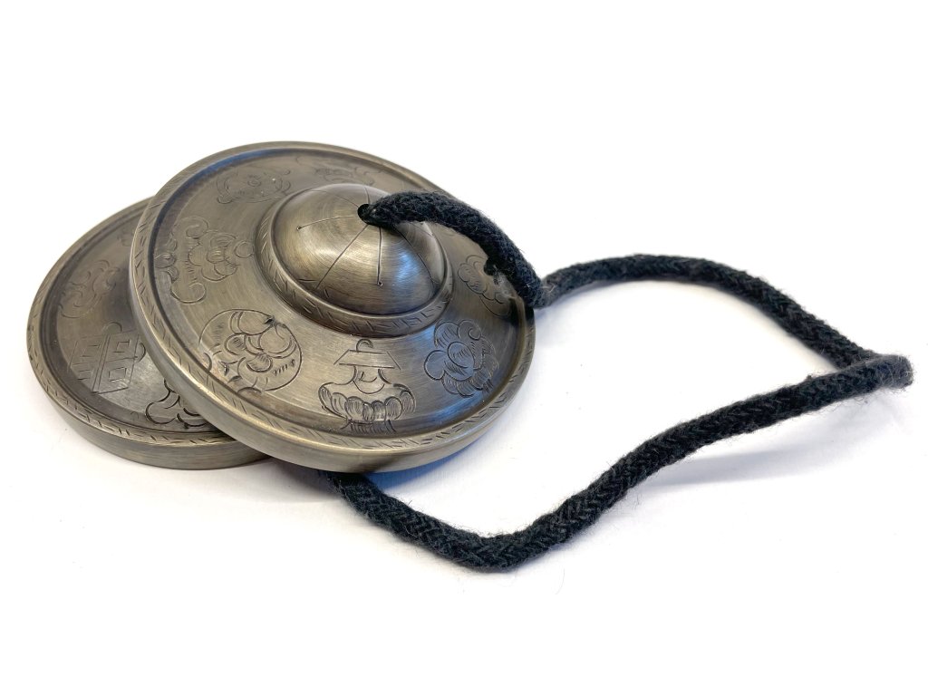 Tingša, rituálny hudobný nástroj určený pre obetu zvuku. Ručne tepalný vzor. Obal zadarmo.